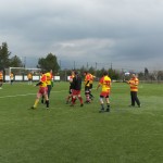 Grisé par cet avantage au score peu habituel à ce moment du jeu nos joueurs perdirent alors un peu de leur concentration, une percée plein champ d’un centre adverse sur un jeu rapide permit la réduction du score. 1-2 à la fin du premier tiers temps. Le deuxième tiers temps à l’avantage des locaux fut notable par l’entrée en jeu du second arbitre qui bien que non reconnu par nos hôtes fut pour eux un renfort efficace.